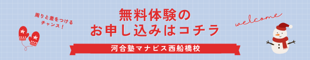 西船橋で「大学受験専門」の塾と言えば河合塾マナビス! 「映像授業」×「アドバイザー」でひとつ上の現役合格へ導きます。 \ お気軽にお問い合わせください / 【お電話でのお問い合わせ】 047-495-1250