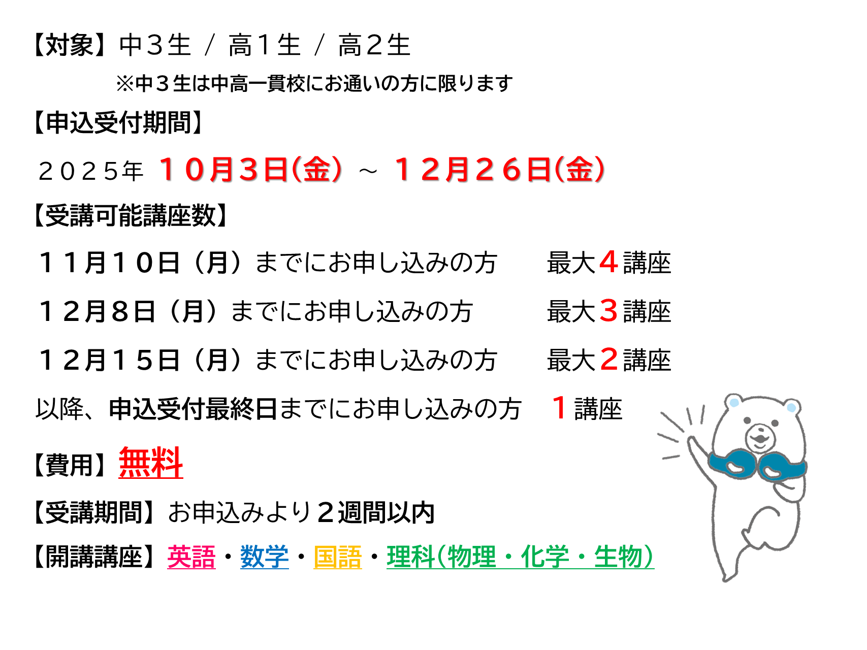 冬期特別無料講習