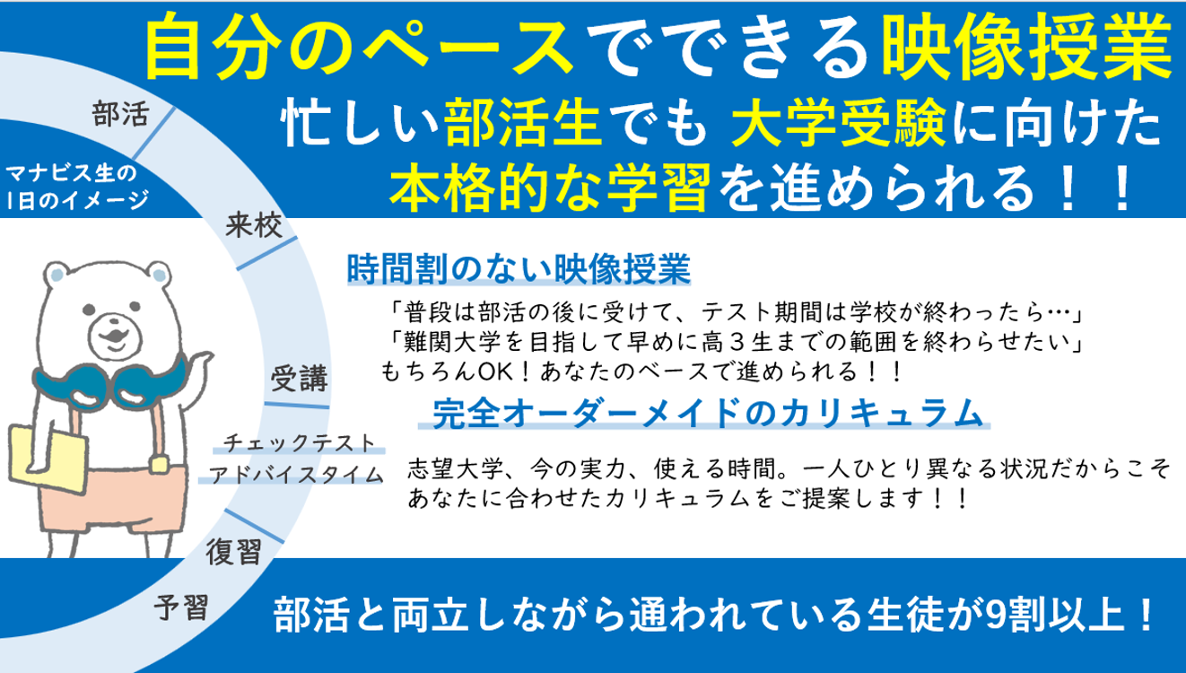 マナビスの映像授業は、わかりやすさトップレベルの河合塾講師陣による、理解のツボを押さえた熱気あふれる授業。