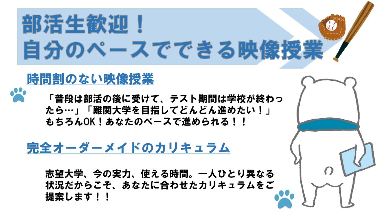 ふじみ野校のスタッフも高校時代には部活と学習の両立を図り、取り組んできました。どのように両立したか、定期テストの対策方法など自ら経験してきたことをもとにアドバイスしております。