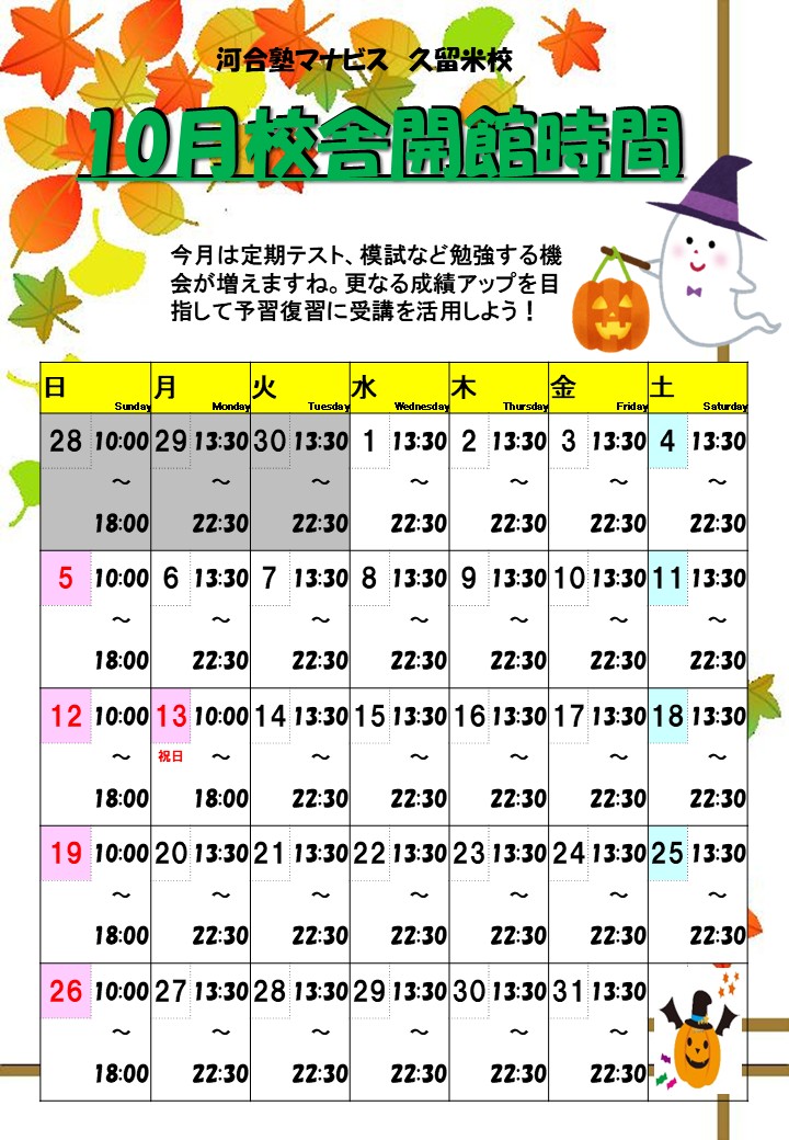 ※時期によって開館時間が異なることがあります。詳細は校舎にお問い合わせください。