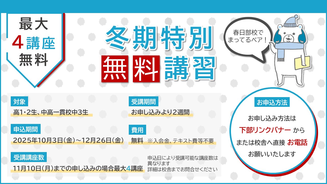 この大学入試を志望校合格という今後の人生を支える「成功体験」にしていただくために春日部校では基礎学力の向上に拘った指導をしております。また、高校生一人ひとり様々な悩みを抱えているかと思います。そんな不安に寄り添いながら大学合格のゴールにたどり着けるよう校舎スタッフ一同サポートさせて頂きます。皆様とお話しできることを楽しみにしております。 |