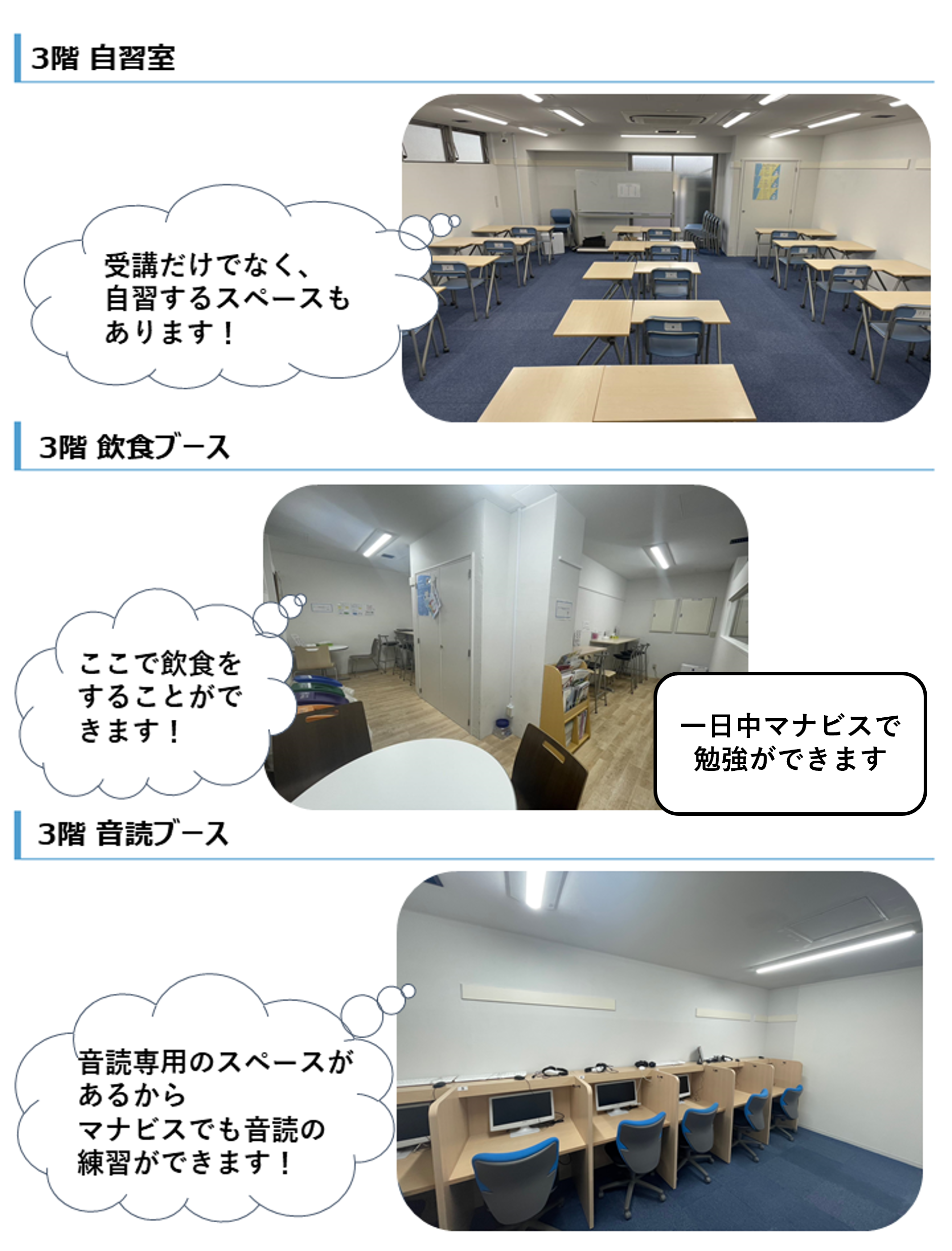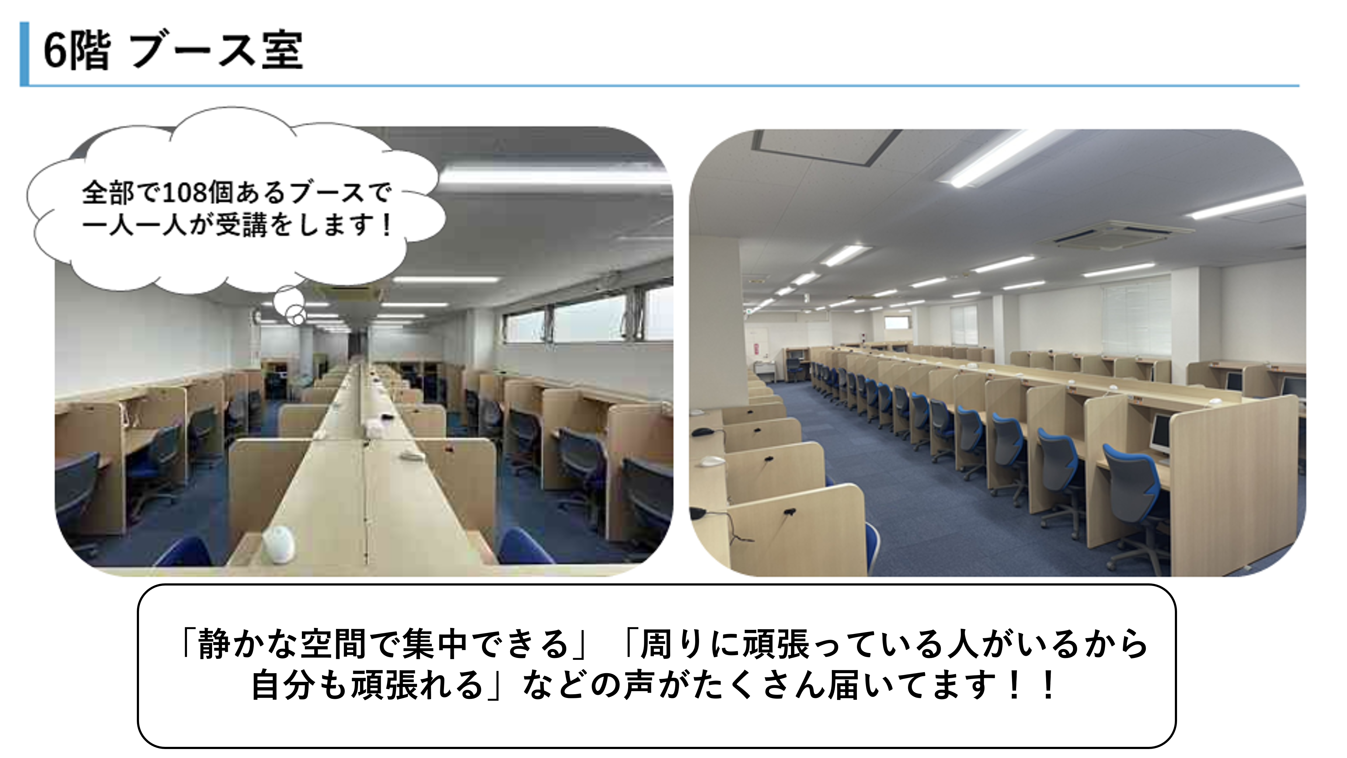 まで開館しています。春休み・夏休みなどの長期休み、受験直前期などは開館時間の延長も行っています!受講をする日以外も、自習スペースとしていつでも使えます!!