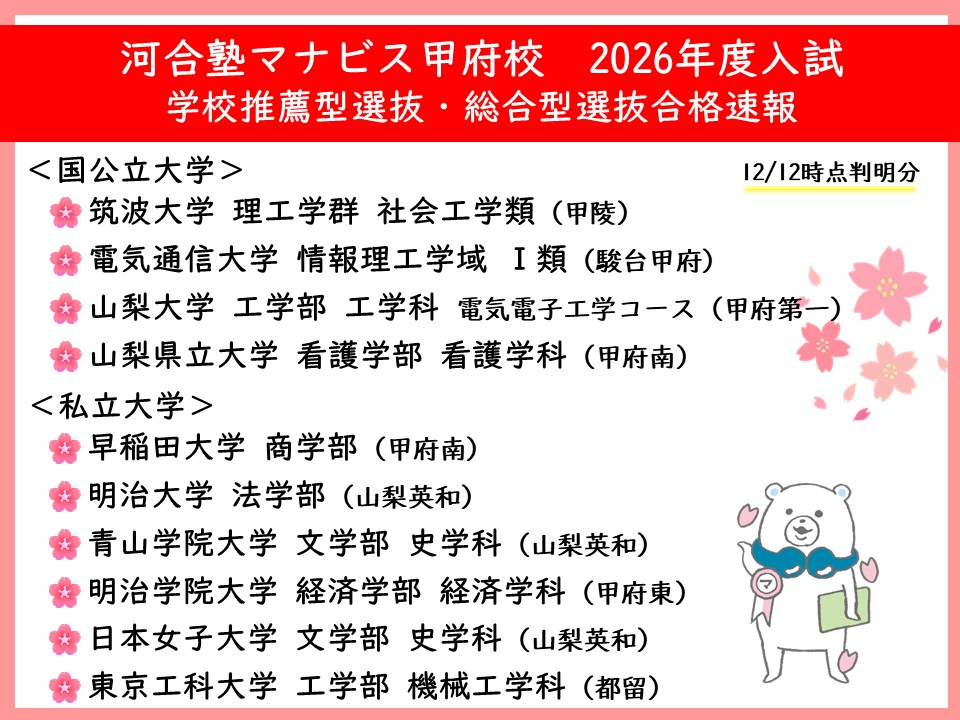今の理科や社会の進度で、難関大に現役合格できるかな… 全ての科目が合格ラインに届いてるわけではない… そんなキミの不安をマナビスでなら解決できます! さらに大学別対策講座で キミの現役合格を強力にサポート! .png?12336115533920)