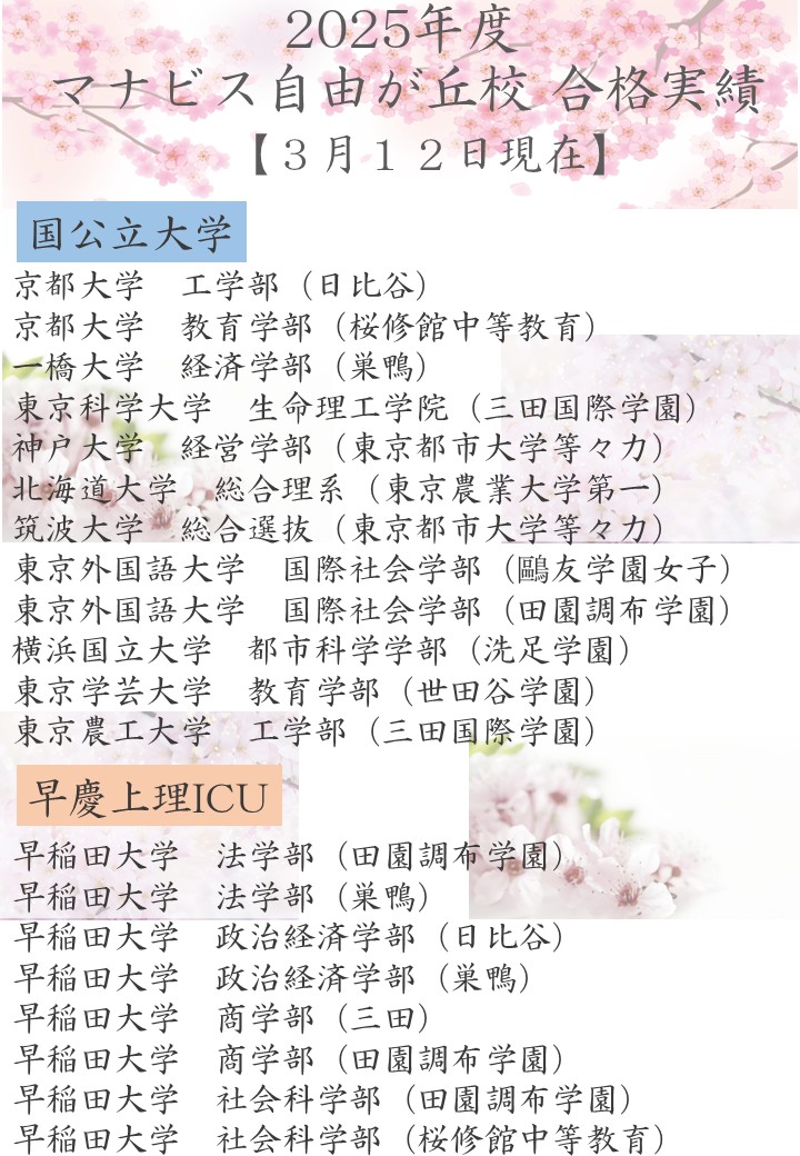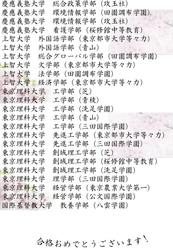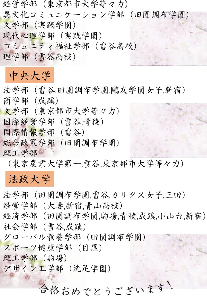 自由が丘校 合格実績<一般選抜>🌸
