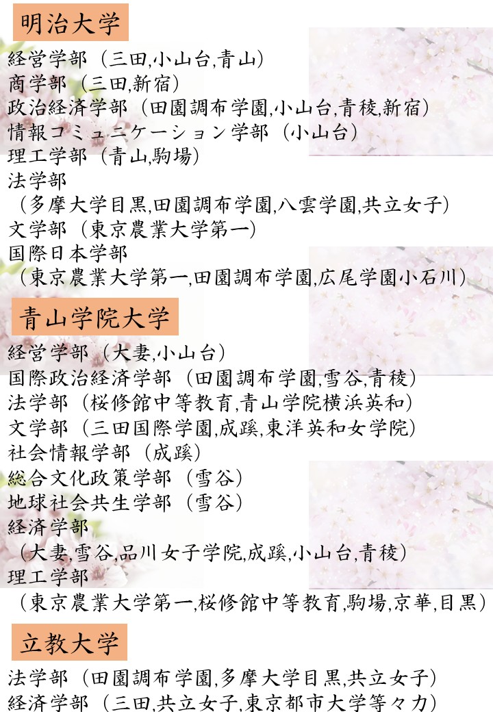 保善/実践女子学園/学習院/成城学園/世田谷学園/駒場学園/トキワ松学園/獨協/巣鴨