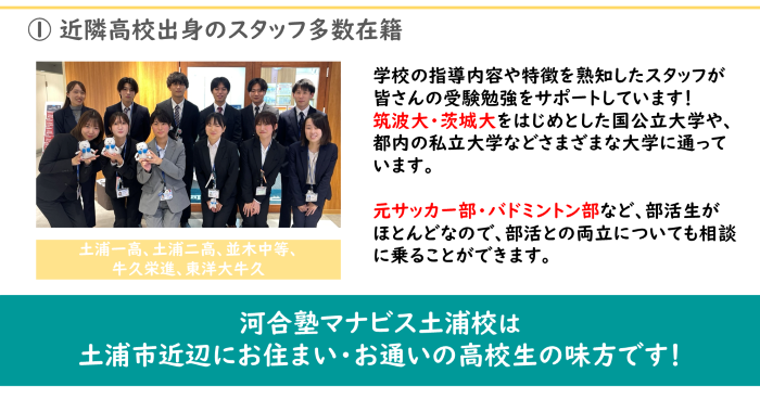 部活が忙しい中高校2年生のうちからこつこつ対策を積み重ねたことで、苦手科目を克服していました。モチベーションや計画で苦しむことがあってもすぐにスタッフへ相談して軌道修正できる点が彼の強い部分でした。合格おめでとうございます!