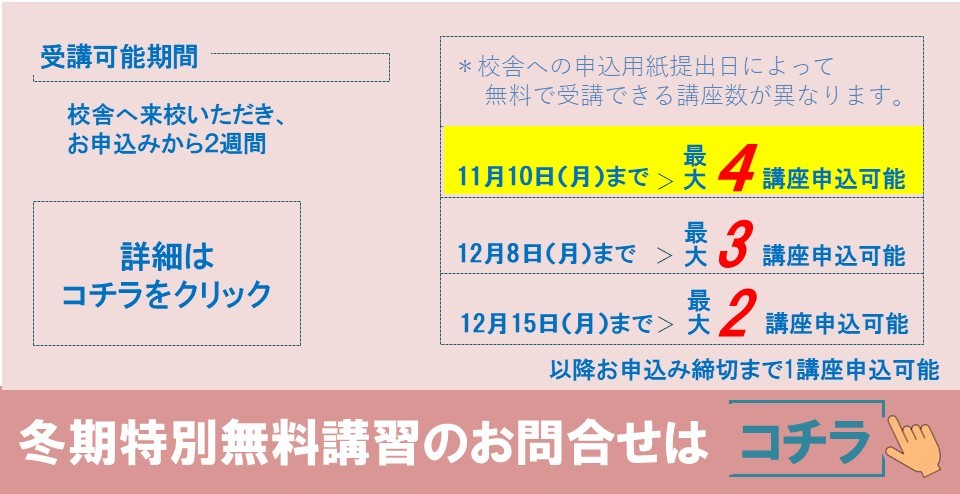 ※お申し込み後、確認のため校舎よりお電話いたします。