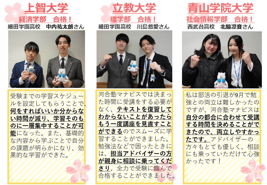 志木校のアシスタントアドバイザーは、ほとんどがマナビス志木校出身です!