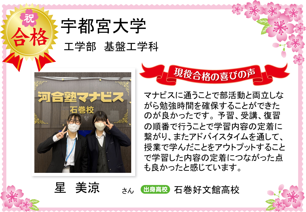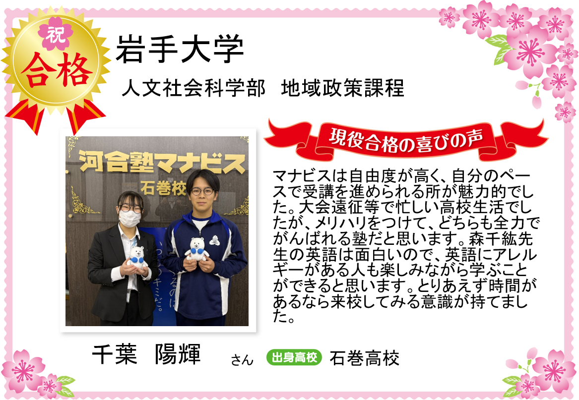 そうした要望に河合塾マナビス石巻校がお応えします!