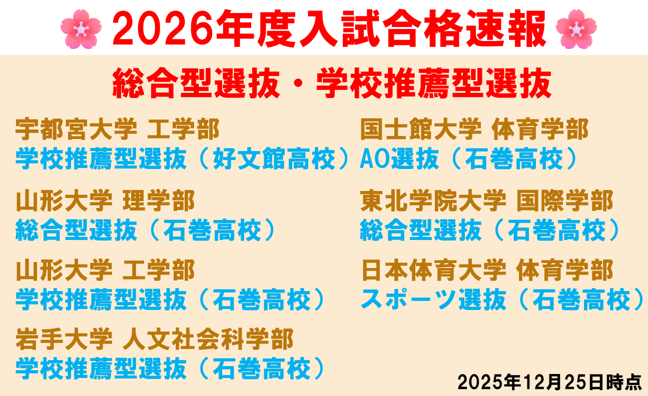 いずれの高校にも河合塾マナビス石巻校なら対応できます。