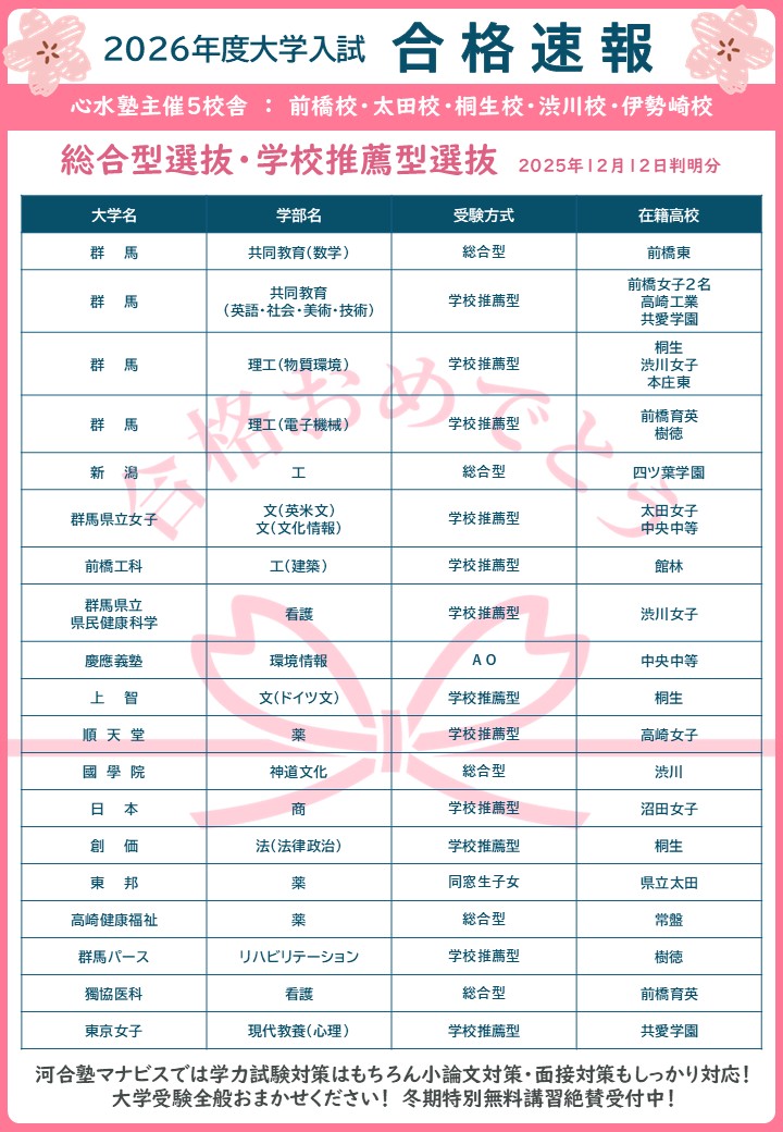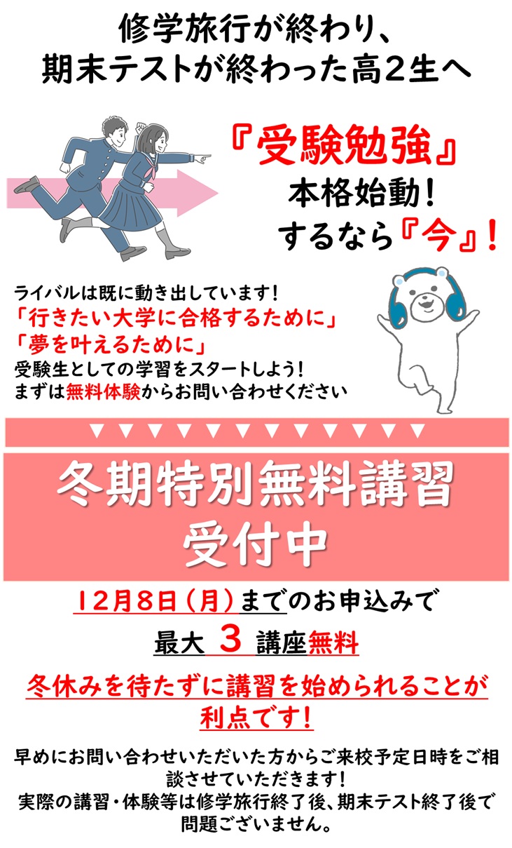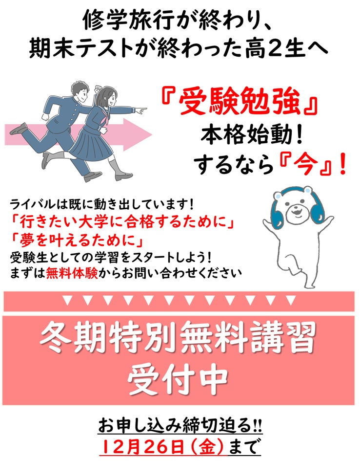 【お電話でのお問い合わせ】 0277-20-7708 高1から志望校合格を見据えた学習計画をご提案いたします。志望校が決まっていなくても、大学受験に必要な基礎力を早期に習得し、受験校の幅を増やします。 高1からの難関大合格に向けてサポートします!