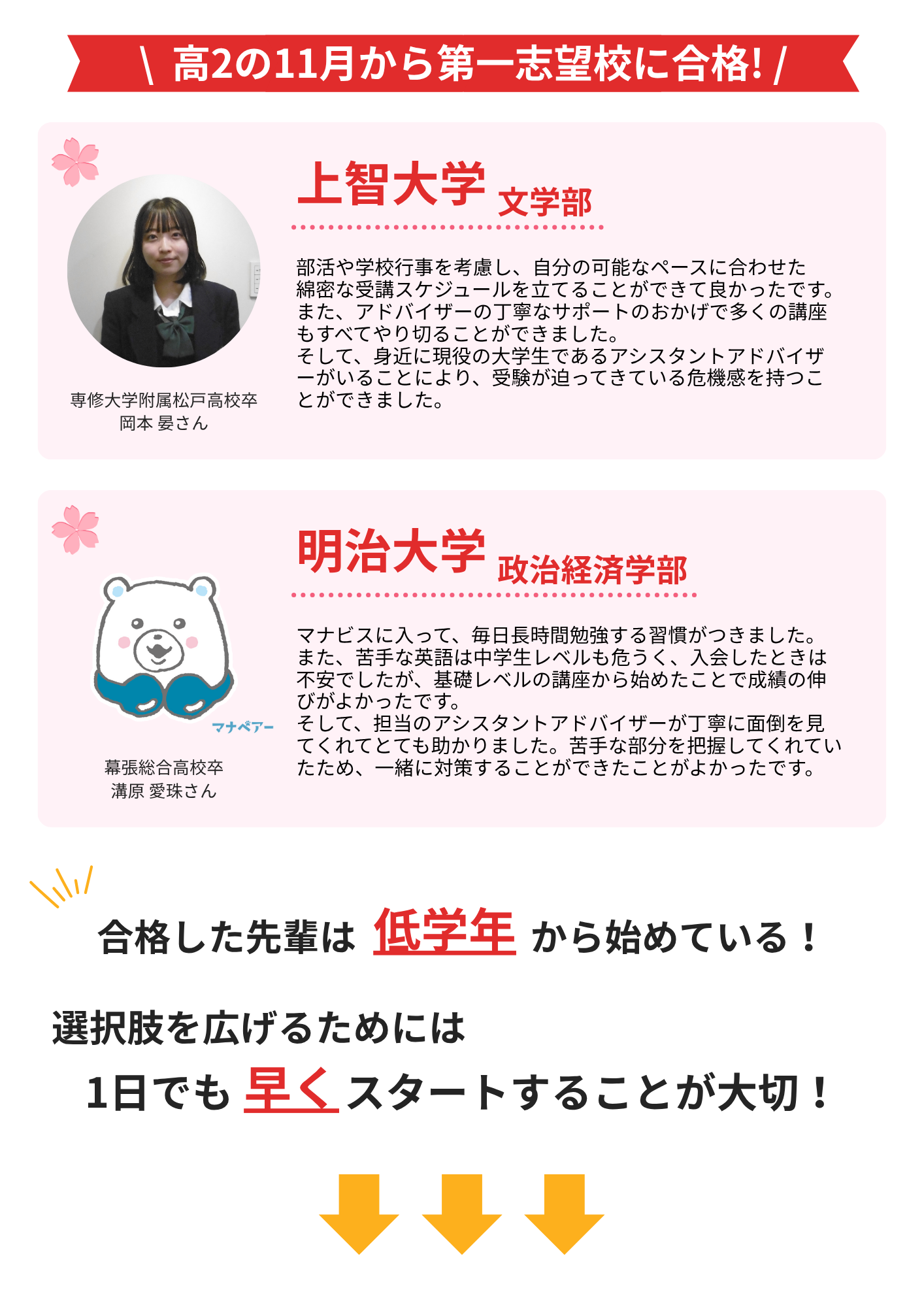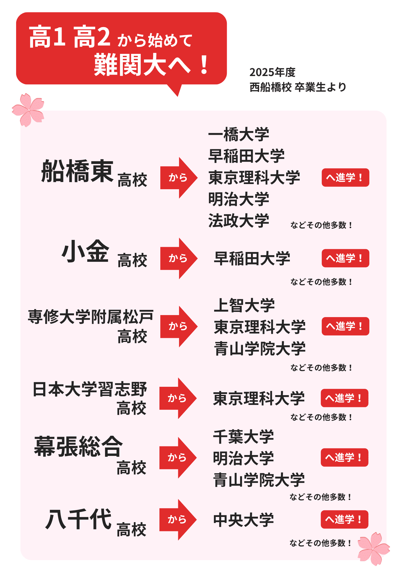 市川校:JR総武線 「市川」駅 北口徒歩1分 TEL:047-711-0770 妙典校:東京メトロ東西線「妙典」駅 南口・東口徒歩1分 TEL:047-711-0906 南行徳校:東京メトロ東西線 「南行徳」駅 北口徒歩1分 TEL:047-314-5331 八千代緑が丘校:東葉高速鉄道「八千代緑が丘」駅徒歩3分 TEL:047-458-5071