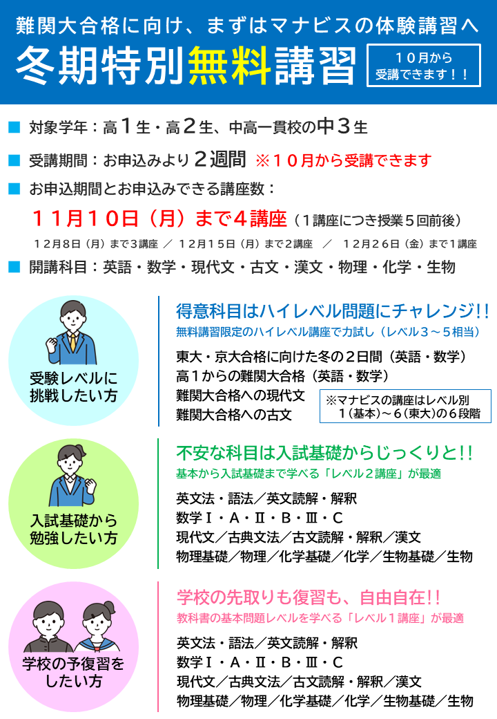 河合塾マナビス松戸校HP 目次 ~気になったところをクリックして下さい。 ✎2025年度合格実績! ✎高1生、難関大/第一志望の合格を目指すなら、「今」からマナビス松戸校へ! ✎河合塾マナビス松戸校の強み ✎中高一貫中3生~高2生の方へ:定期試験対策、高校補習をご希望の方へ ✎自宅受講ログイン ~24時間映像授業配信中~ ✎JR松戸駅から河合塾マナビス松戸校へのアクセス ↓お電話でのお問合せ↓ 047-312-3985 他にも合格体験談を多数掲載中!コチラ お電話でのお申込み:047‐312‐3985 お電話でのお申込み:047‐312‐3985 お電話でのお申込み:047‐312‐3985