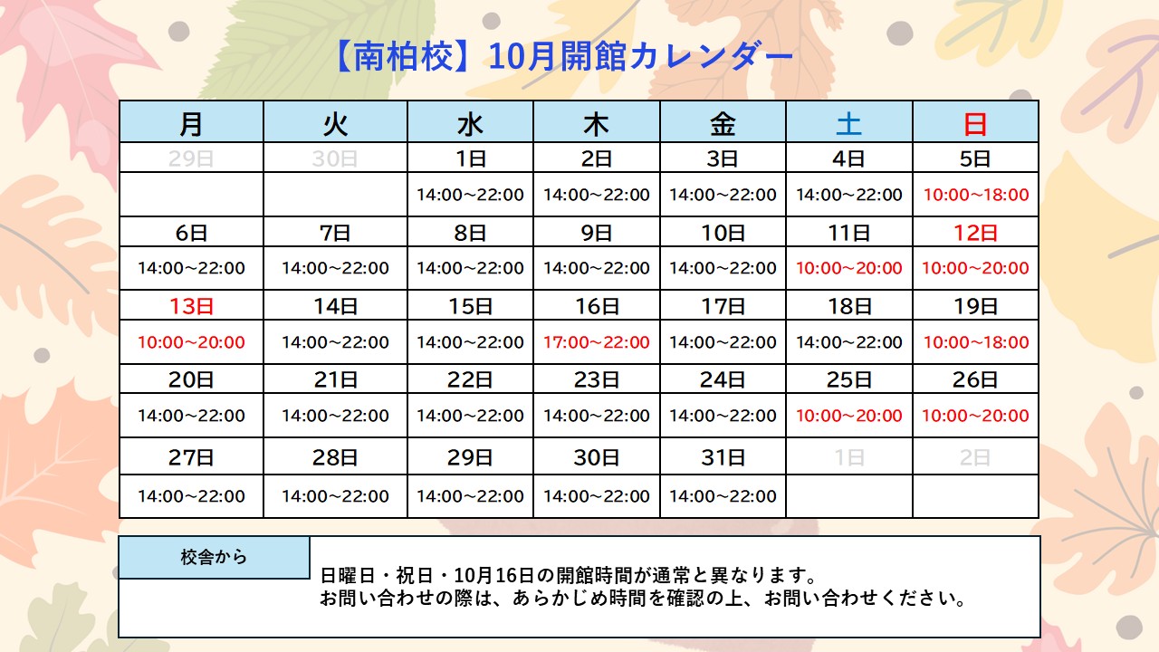 ※時期によって開館時間が異なることがあります。詳細は校舎にお問い合わせください。