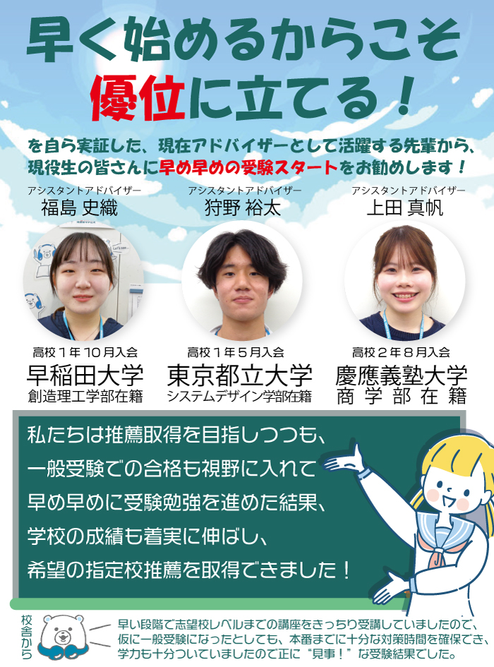 多摩センター校開校 歴代No.2! の合格実績 (3/20時点で確認が取れた多摩センター校在籍生のみの実績です)