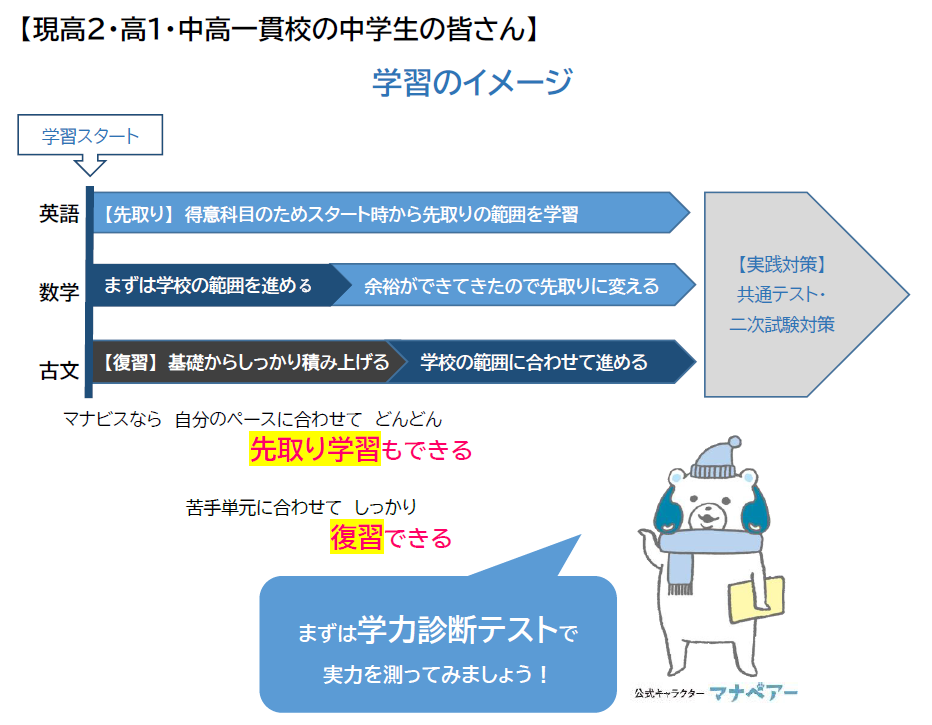1.在籍生が答えた調布校の良いところ 集中できる学習環境 静かで落ち着いた席で勉強ができます‼ 受験までの清潔な学習環境を得られます‼ 2.在籍生が答える調布校の良いところ 気軽に質問・相談できる 調布校を卒業した大学生が親身に対応‼ いつでも気軽にその場で解決‼ 3.在籍生が答える調布校の良いところ 自分のペースと時間で自由に選べる 映像授業だから自分の状況にあわせられる‼ 目標にあわせた学習内容が可能です‼
