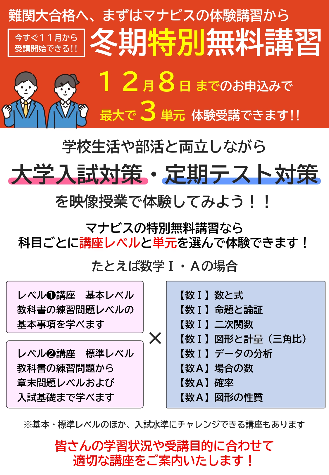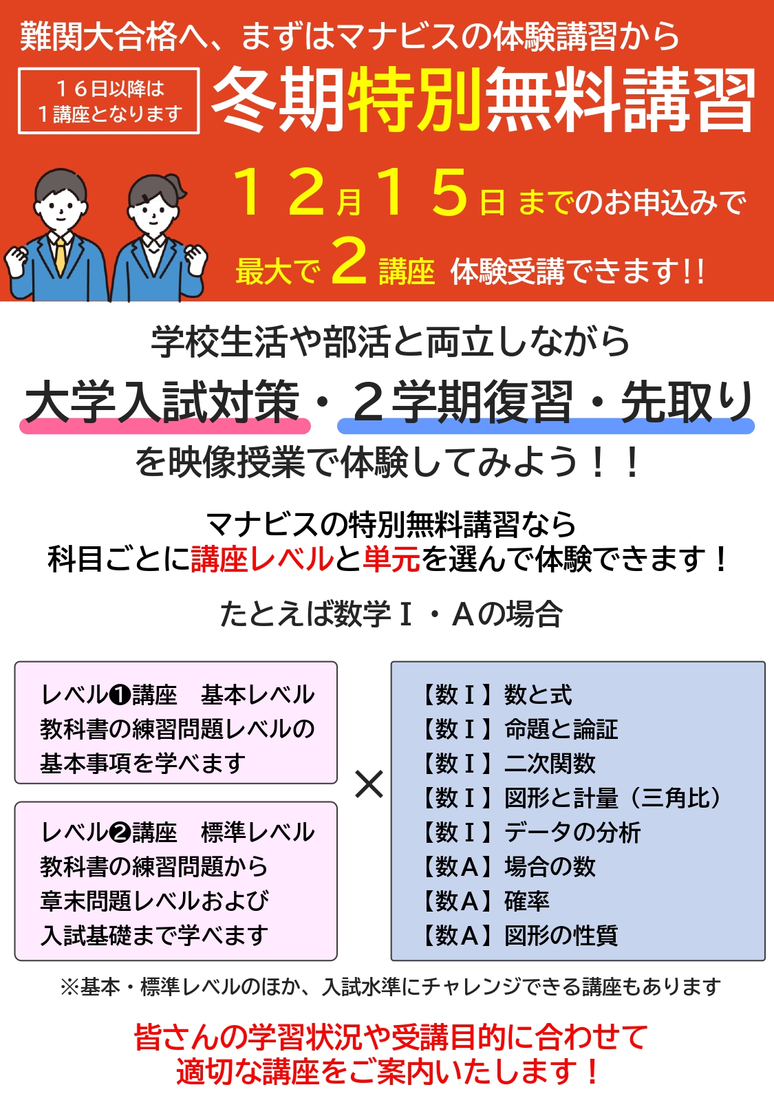 冬期特別無料講習・校舎見学・体験のご案内