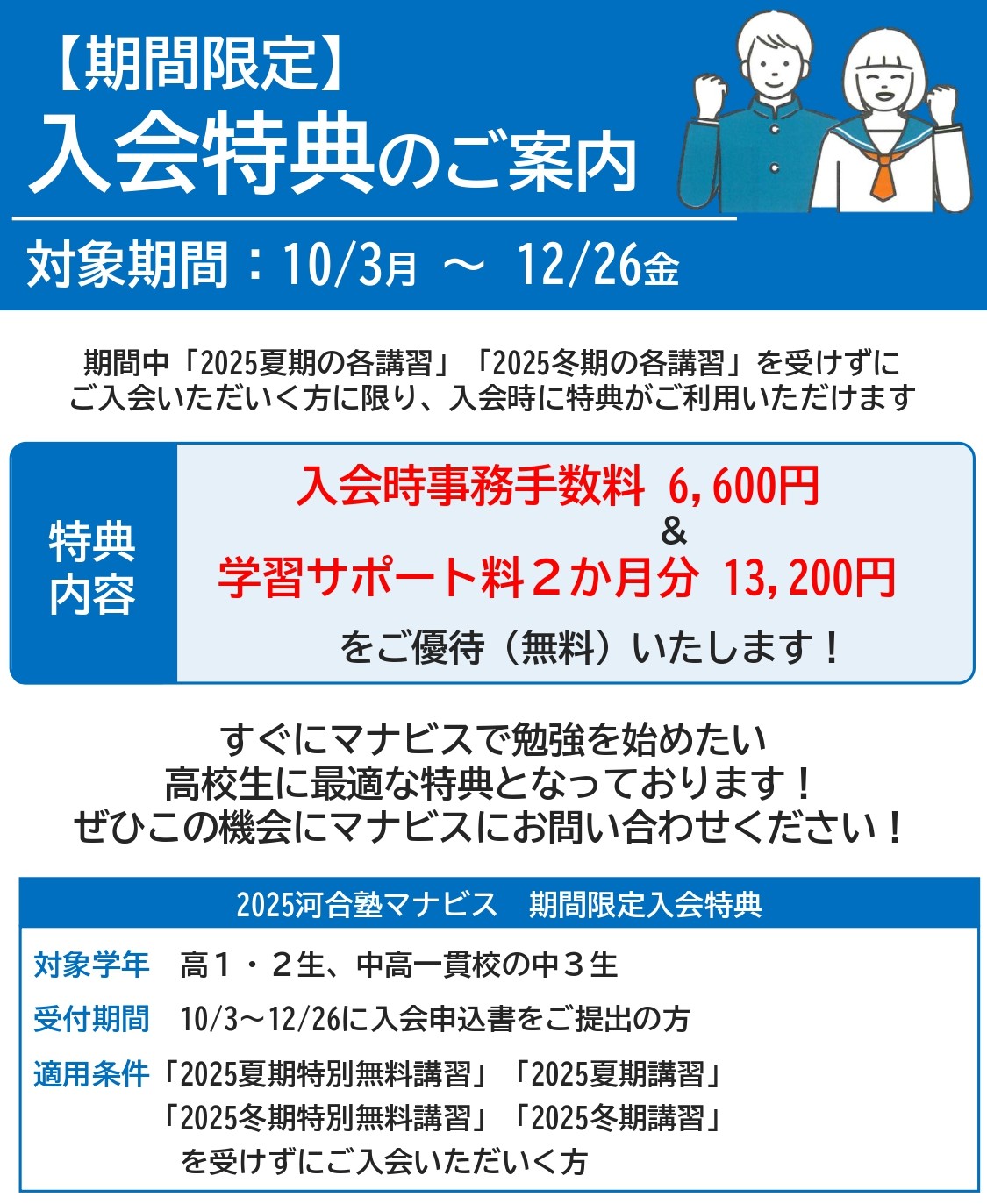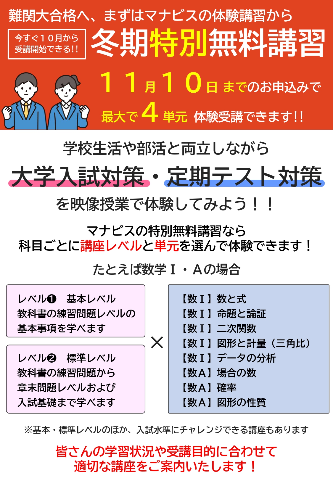 河合塾マナビス田無校の生徒・保護者の方は、