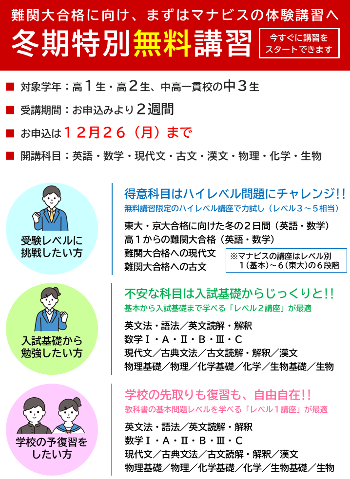 冬休みのスキマ時間を使って、マナビスで効率よく学習しよう!