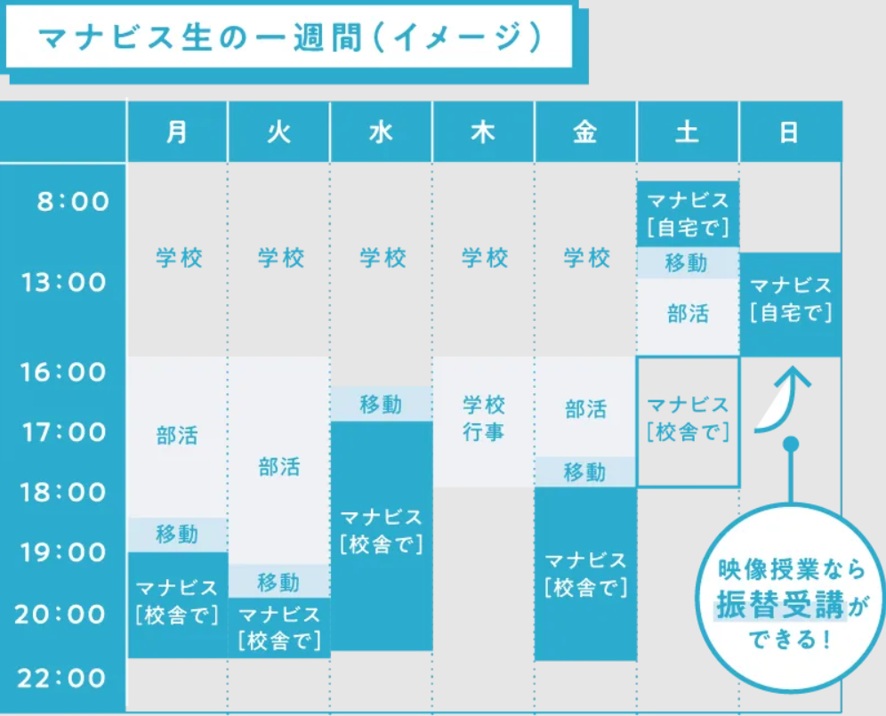 「高校生活って、思ったより忙しい!」そう感じる高校生は多いのではないでしょうか。集団授業の塾では「授業にあわせて予定を組む」ことが一般的ですが、映像授業の河合塾マナビスでは「予定に合わせて授業を組む」ため、部活や高校生活で忙しい高校生におすすめです。