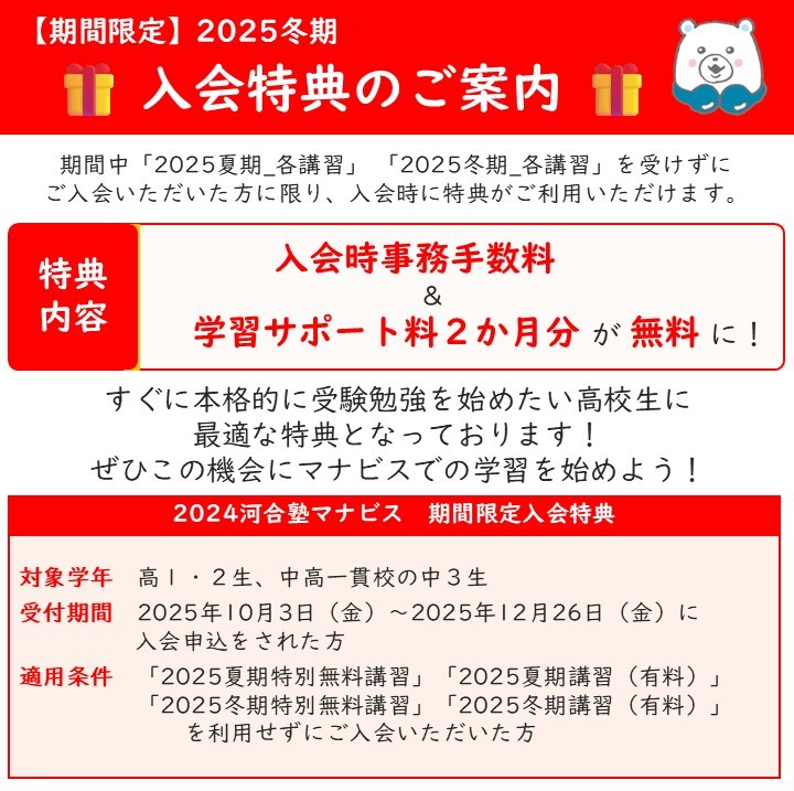 ※以下は、昨年度(2024年4月入学者)の大学入試の結果です 2024年 大学入試合格実績一覧⇩ ★クリック★ 2024年 大学入試合格者体験記 【Pick Up!】⇩ ★クリック★ ↑ 学年・目的をクリック! ↑ マナビスなら「自分」に合わせて学習できる! 河合塾マナビス藤沢駅北口校にようこそ! 「私たちが皆さんの大学受験を 全力でサポートします!!」 ■河合塾マナビス藤沢駅北口校の 『授業』の強みはこちらをクリック! ①WEBから校舎へのお問合せはこちら↓