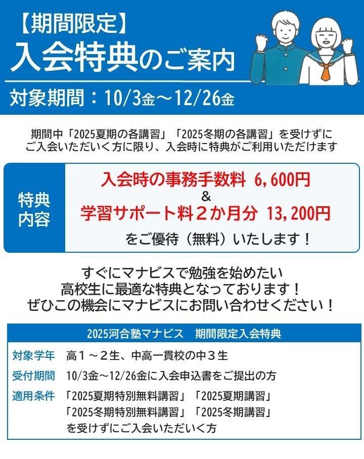 ⛄冬期特別無料講習のご案内⛄ 高3生のみなさんへ ご友人からの紹介を受けた方はこちらへ 高2生の方へ 2024年度 合格実績 オンライン受講について