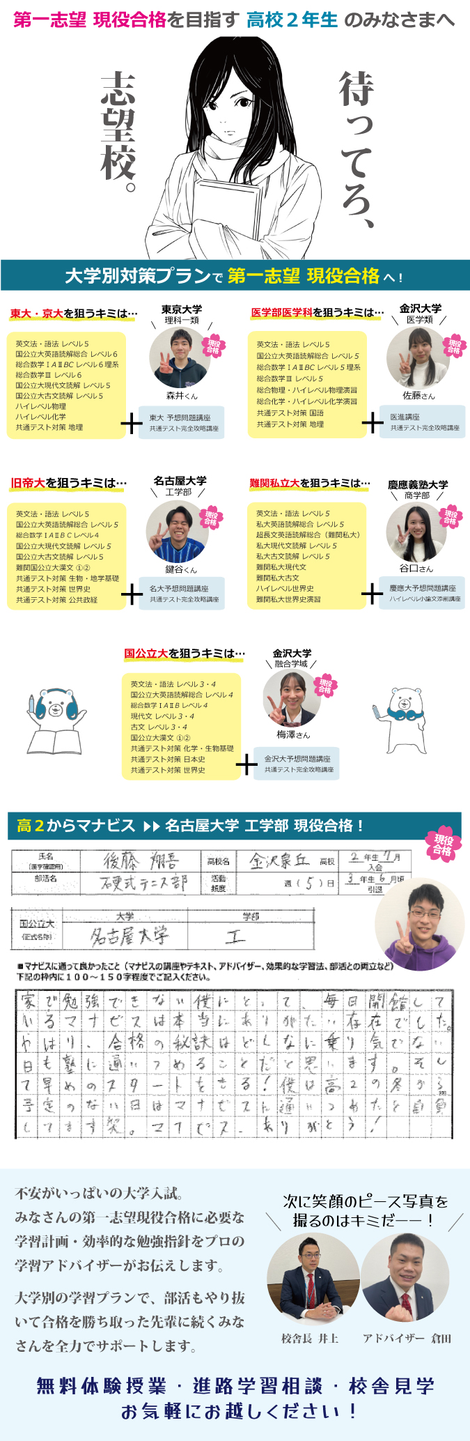 平日 15:00~22:00 土曜 13:00~22:00 日曜 12:00~20:00祝日 13:00~22:00※年間では休館日があります。※時期によって開館時間が異なることがあります。詳細は校舎にお問い合わせください。