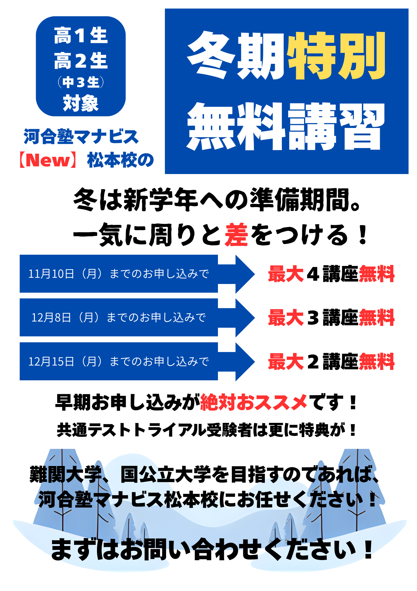 ★松本で大学受験を考えたら、河合塾マナビス松本校へ★ 河合塾マナビス松本校のページへようこそ! どうぞごゆっくりご覧ください。