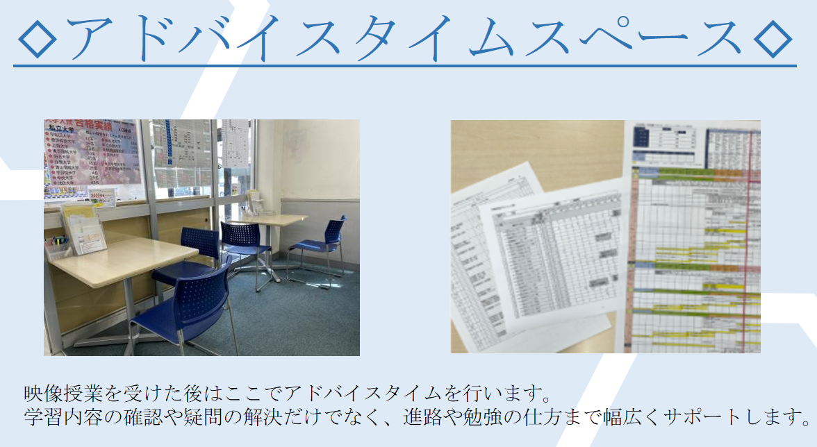 オンラインでアドバイスタイムや学習相談などのサポートも行います。