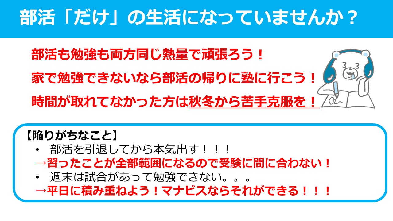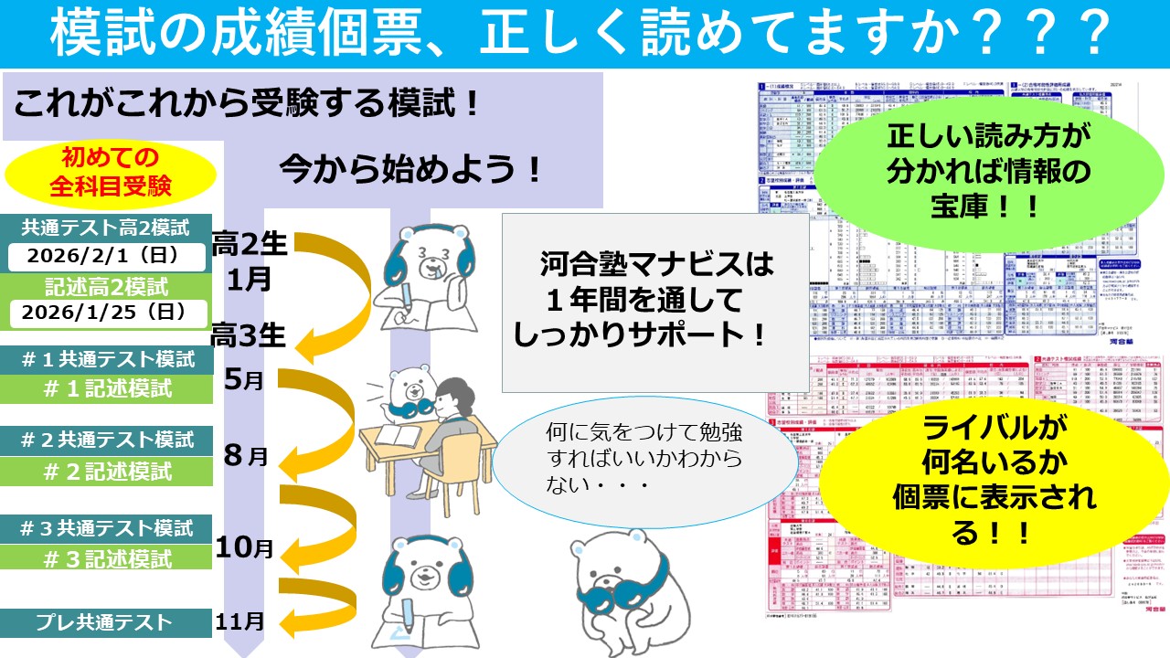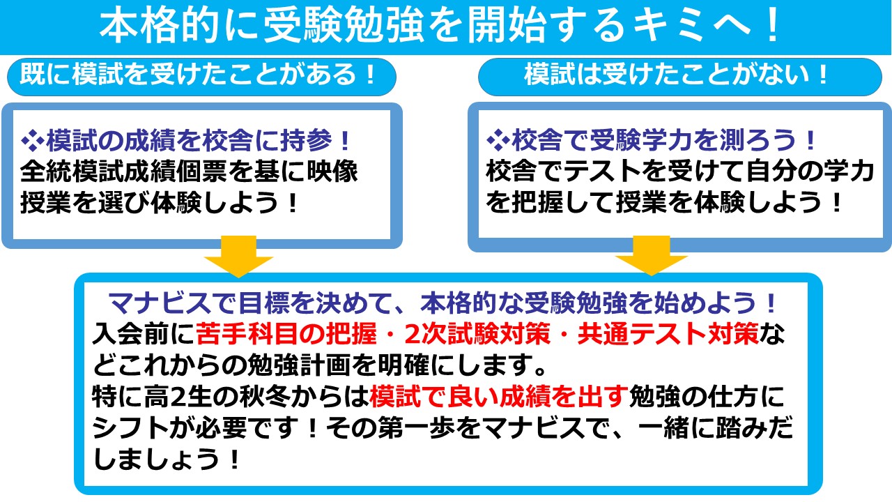 まだまだあります「合格した先輩の声」 こちらを クリック! してください。 「受験勉強を頑張りたい新高3生」 「勉強に不安を感じている新高2生」 「高校の学習を覗いてみたい新高1生」 河合塾マナビス上小田井校が、皆さんを全力で応援していきます! 塾をお探しの方、ぜひご活用ください。 お電話でのご予約、お待ちしています! 052-325-7744