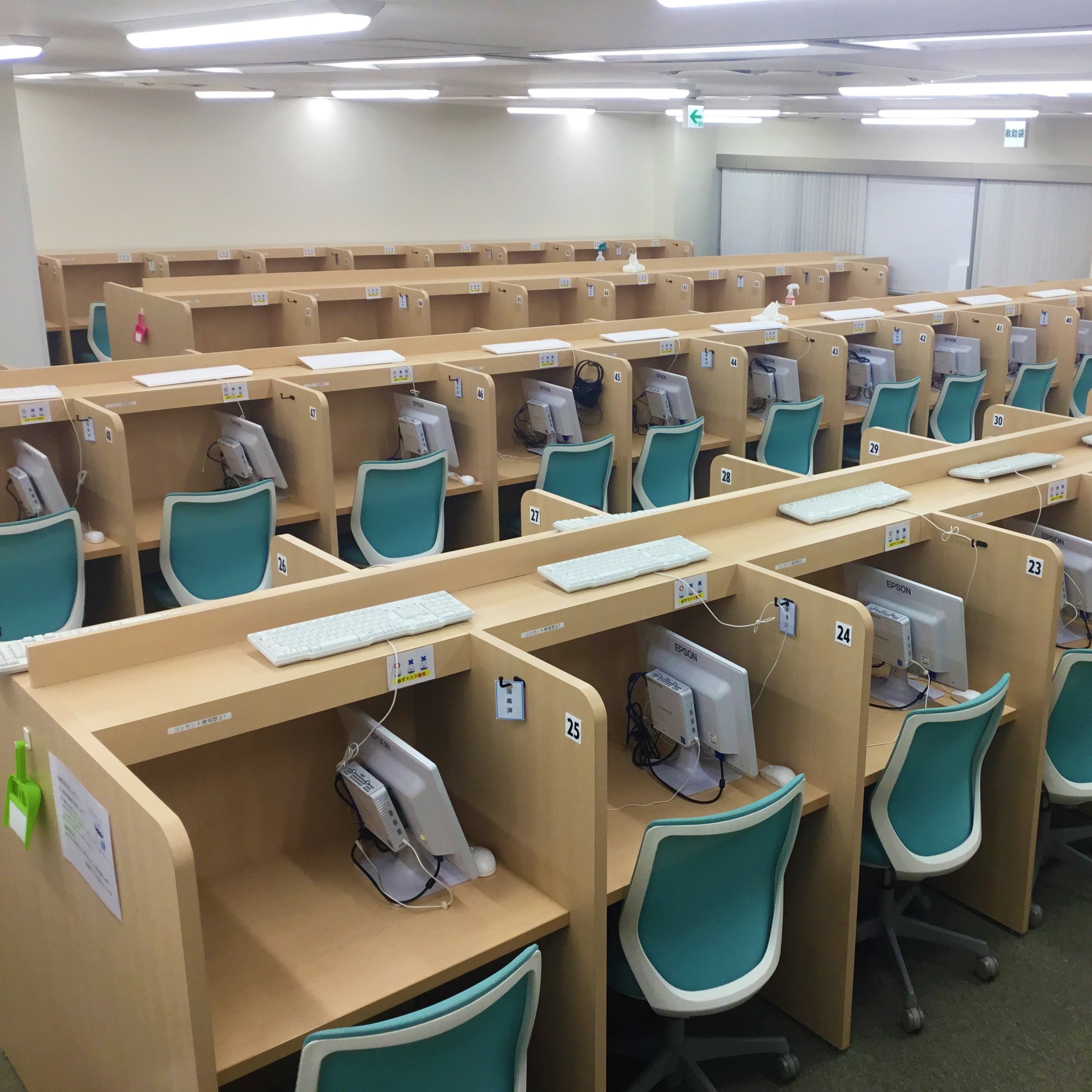 静かで集中できる個別ブース形式の学習空間。空気洗浄機も完備