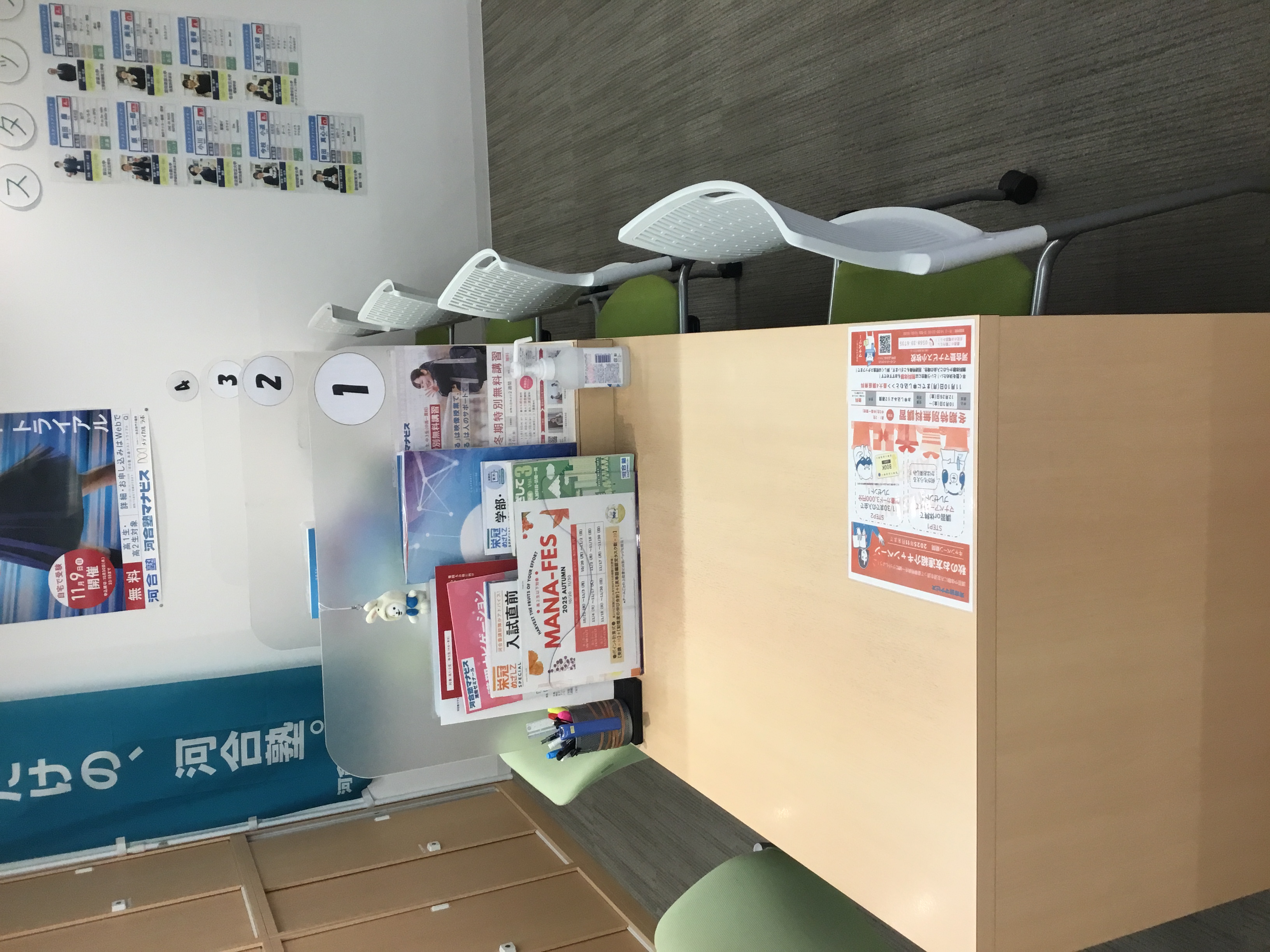 広く使える自習スペース。毎月セミナーも開催して今必要な学習方針を伝えます。