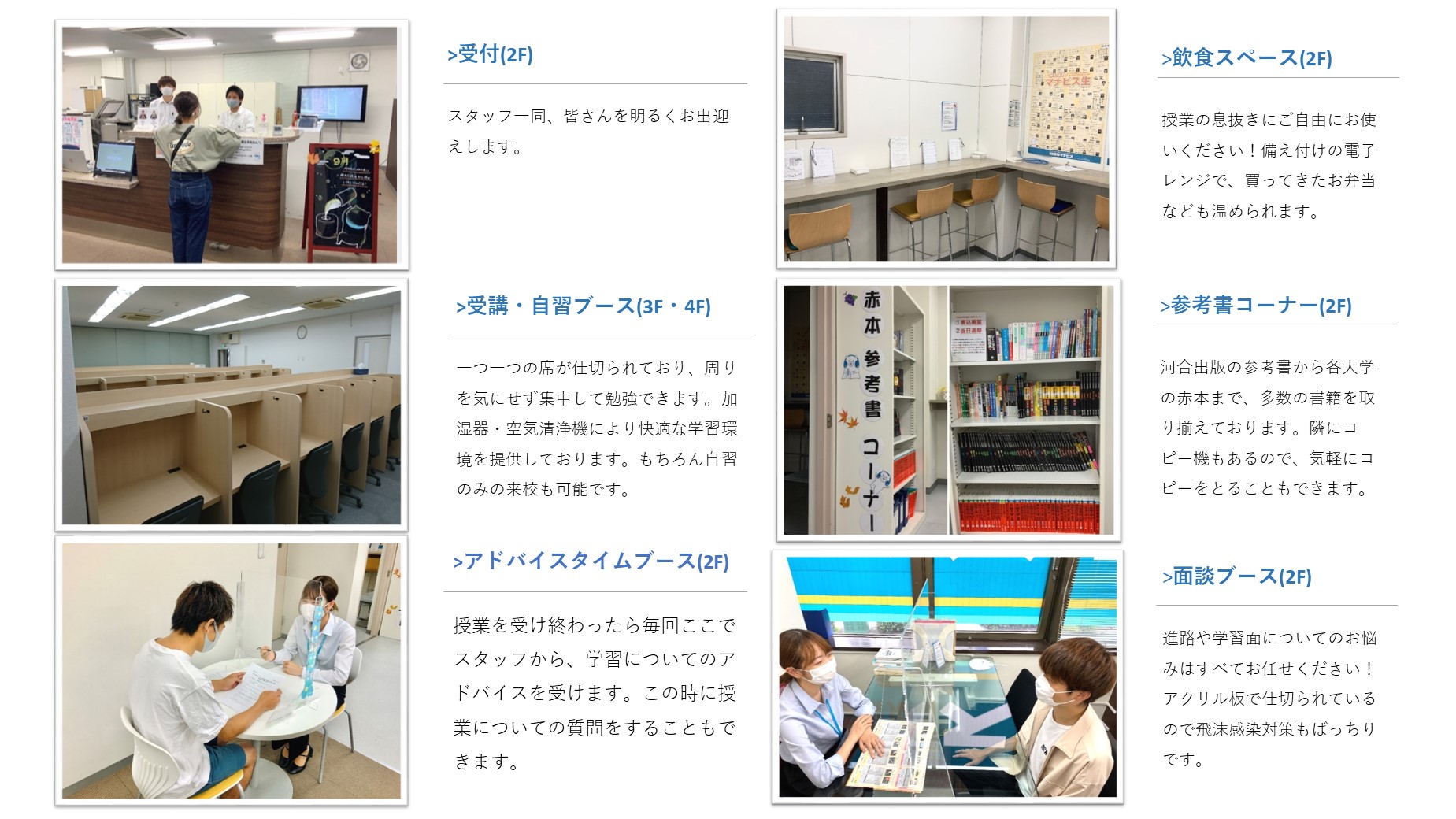 平日 14:00~22:00土曜 10:00~22:00日曜・祝日 10:00~20:00※年間では休館日があります。※時期によって開館時間が異なることがあります。詳細は校舎にお問い合わせください。
