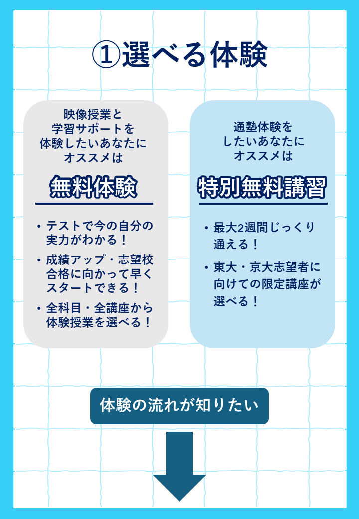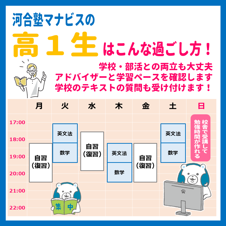 平日・土曜 14:00~22:00日曜・祝日 10:00~18:00※年間では休館日があります。※時期によって開館時間が異なることがあります。詳細は校舎にお問い合わせください。