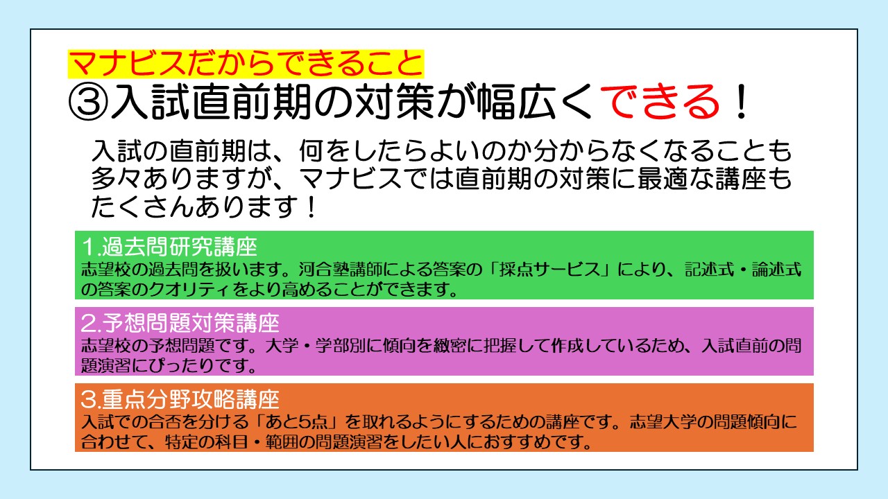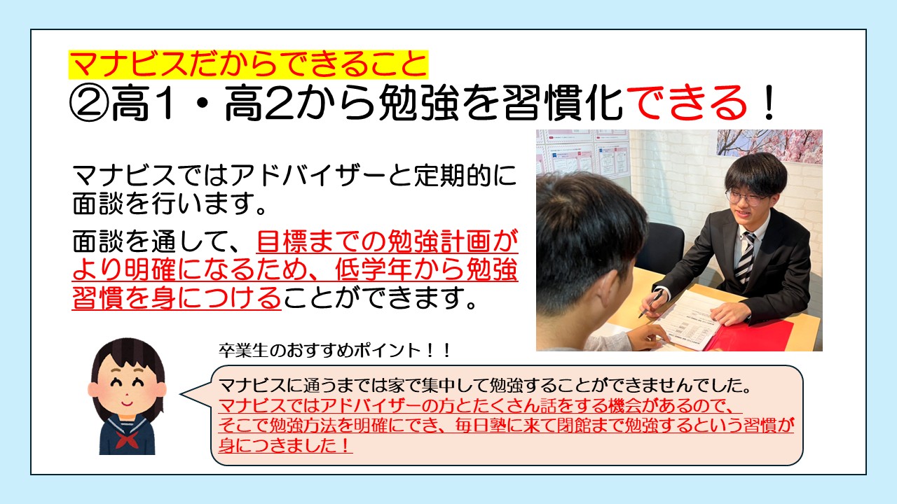 ☆高1、高2生からの受験相談もお待ちしております! 早くから勉強をスタート出来れば、難関大合格の可能性も グッと上がります! ※高2生向けセミナー資料より抜粋
